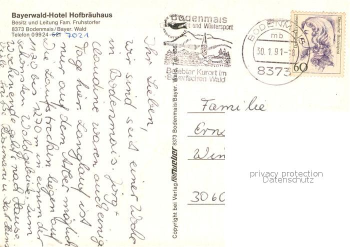 73093685 alte Postkarte Bodenmais Bayerwald-Hotel Hofbraeuhaus postalisch gelaufen Erhaltung siehe scans [NatalD47] KatCode: 11110009276117