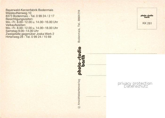73165417 Bodenmais Bayerwald Kerzenfabrik postalisch nicht gelaufen Erhaltung siehe scans [KathaD81] KatCode: 11110009276117
