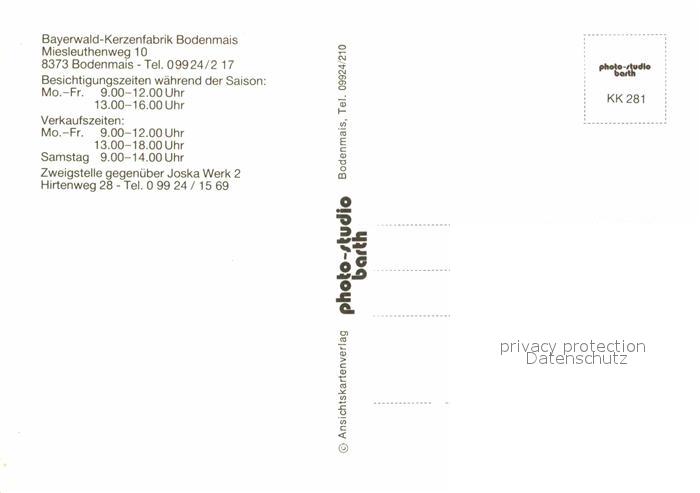 72893829 Bodenmais Bayerwald Kerzenfabrik postalisch nicht gelaufen Erhaltung siehe scans [AndreD76] KatCode: 11110009276117
