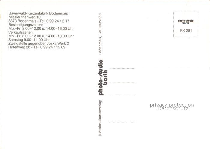 72583501 Bodenmais Bayerwald Kerzenfabrik postalisch nicht gelaufen Erhaltung siehe scans [LiesaD40] KatCode: 11110009276117