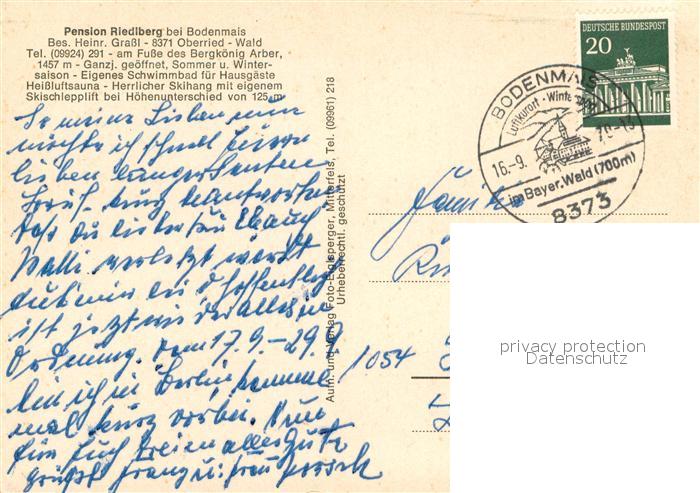 73659850 alte Postkarte Bodenmais Berggasthof Riedlberg Terrasse Swimming Pool postalisch gelaufen Erhaltung siehe scans [FriedD77] KatCode: 11110009276117