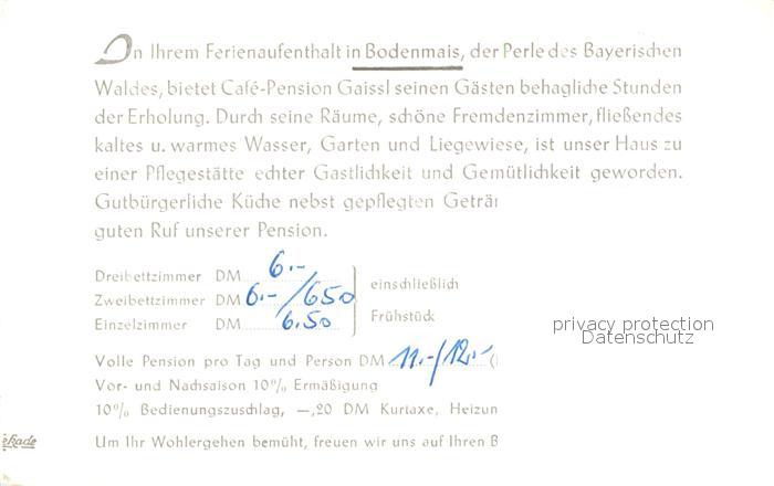 73301686 Bodenmais Cafe-Pension Math. Gaissl postalisch nicht gelaufen Keine Postkarte (siehe scan) Erhaltung siehe scans [PaolaD17] KatCode: 11110009276117