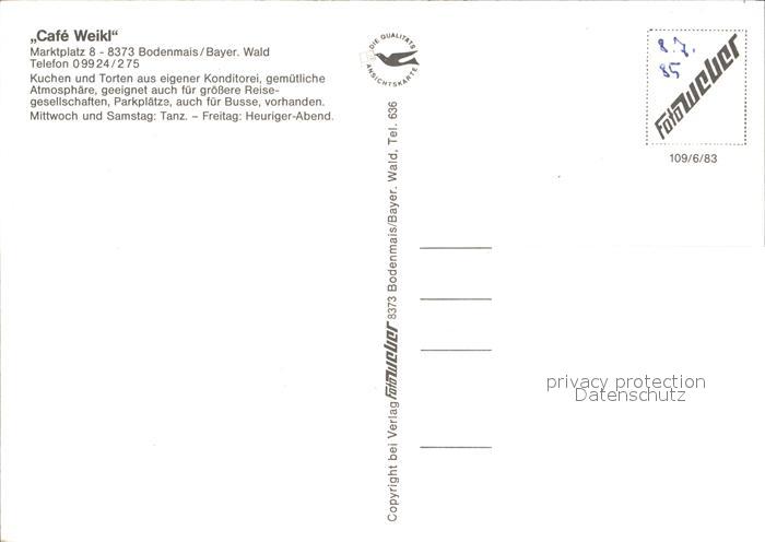 72288307 Bodenmais Cafe Weikl postalisch nicht gelaufen Erhaltung siehe scans KatCode: 11110009276117