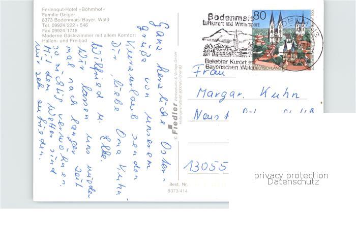 72510554 alte Postkarte Bodenmais Feriengut Hotel Boehmhof Nachtaufnahme postalisch gelaufen Erhaltung siehe scans KatCode: 11110009276117