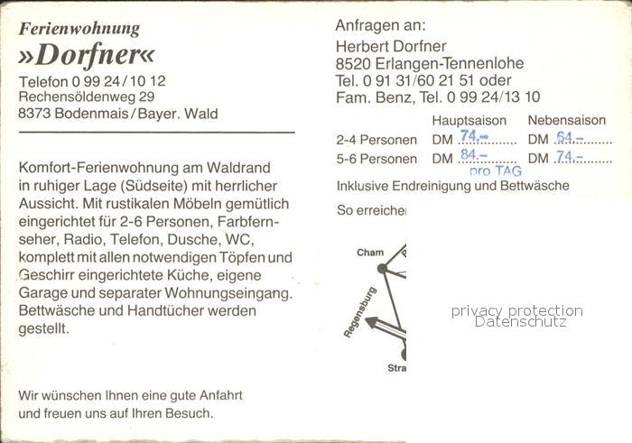 72155956 Bodenmais Ferienwohnung Dorfner postalisch nicht gelaufen Werbekarte (keine Postkarte) Erhaltung siehe scans KatCode: 11110009276117