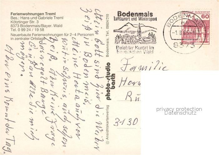 73651205 alte Postkarte Bodenmais Ferienwohnungen Treml im Bayerischen Wald Panorama postalisch gelaufen Erhaltung siehe scans [FriedD77] KatCode: 11110009276117
