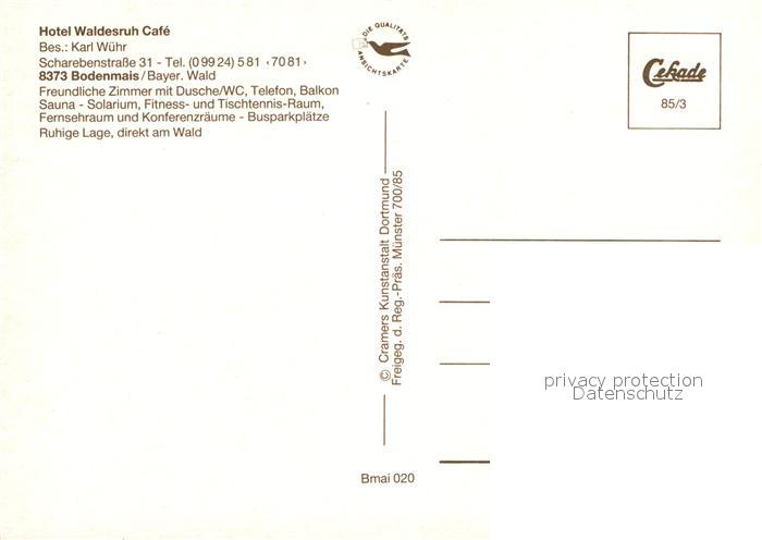 72940803 Bodenmais Fliegeraufnahme Hotel Waldesruh Cafe postalisch nicht gelaufen Erhaltung siehe scans [KathaD81] KatCode: 11110009276117