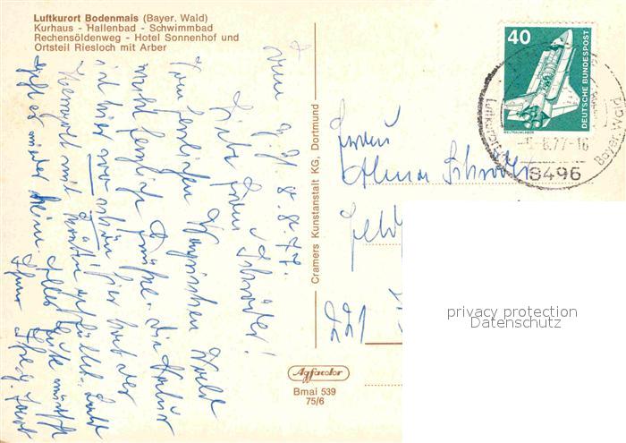 72764324 alte Postkarte Bodenmais Fliegeraufnahme Kurhaus Hallenbad Schwimmbad Hotel-Sonnenhof Riesloch Arber postalisch gelaufen Erhaltung siehe scans [LiesaD40] KatCode: 11110009276117