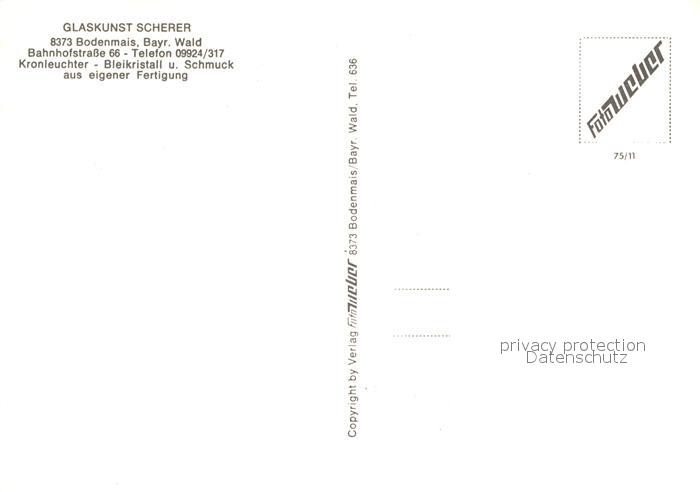 73090283 Bodenmais Glaskunst Scherer postalisch nicht gelaufen Erhaltung siehe scans [NatalD47] KatCode: 11110009276117