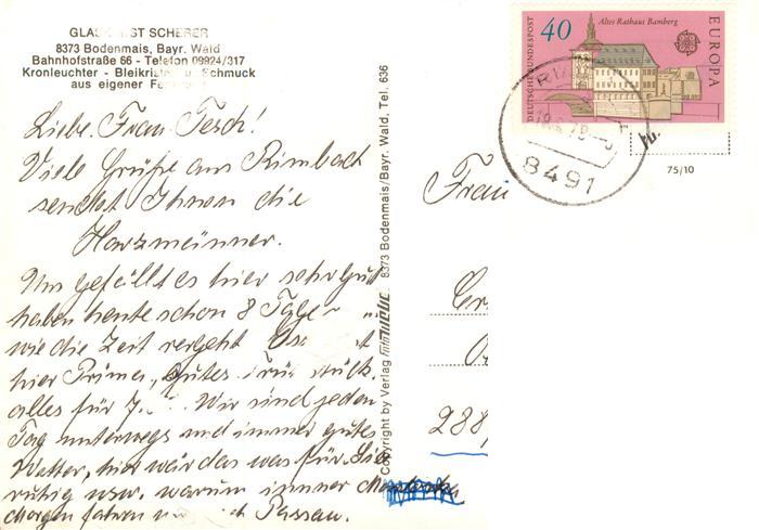 73883520 alte Postkarte Bodenmais Glastkunst Scherer postalisch gelaufen Erhaltung siehe scans [WerneD78] KatCode: 11110009276117