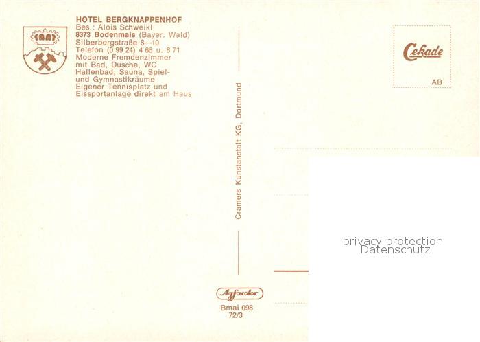 73160725 Bodenmais Hotel Bergknappenhof postalisch nicht gelaufen Erhaltung siehe scans [KathaD81] KatCode: 11110009276117