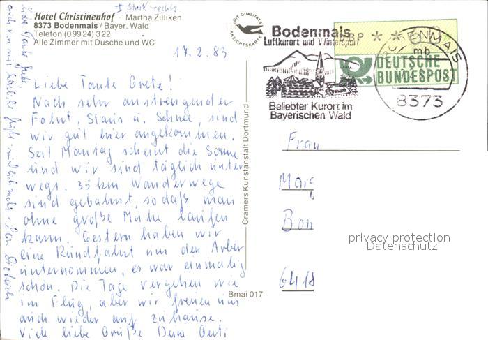 alte Postkarte Bodenmais Hotel Christinenhof postalisch gelaufen Erhaltung siehe scans