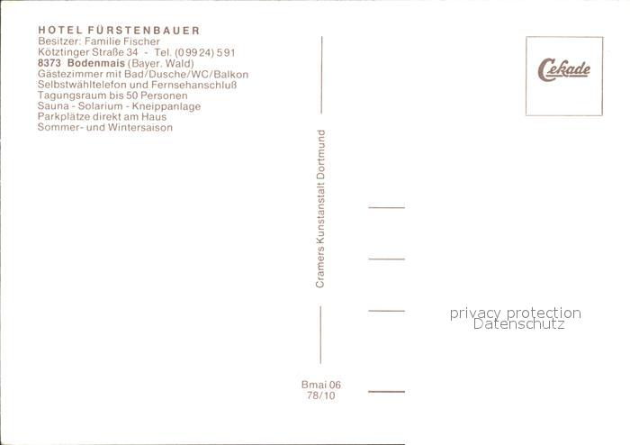 72446714 Bodenmais Hotel Fuerstenbauer postalisch nicht gelaufen Erhaltung siehe scans KatCode: 11110009276117
