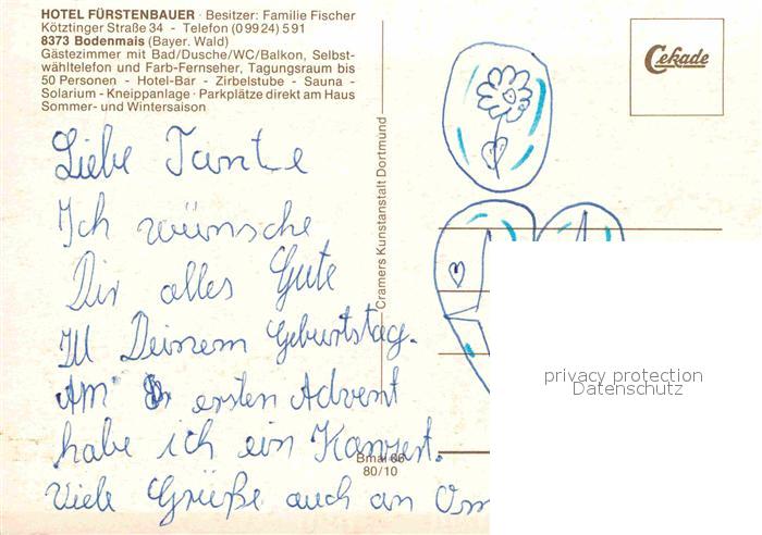 72757992 Bodenmais Hotel Fuerstenbauer postalisch nicht gelaufen Erhaltung siehe scans [NatalD47] KatCode: 11110009276117