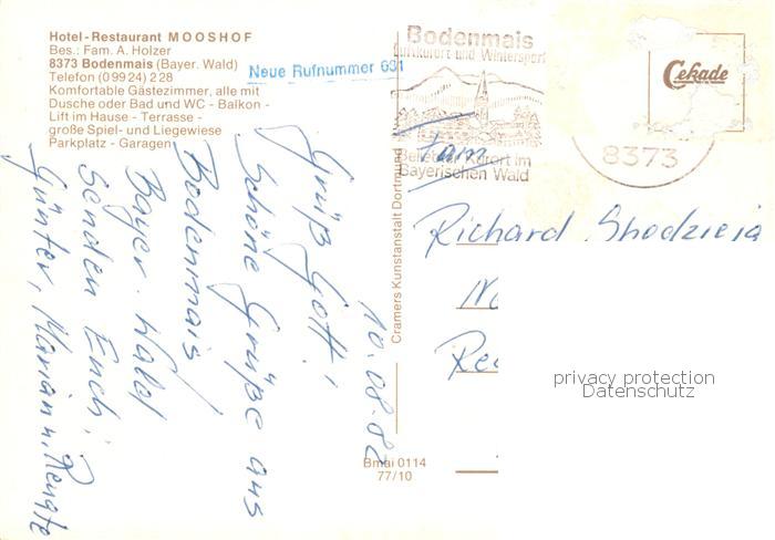 73859263 alte Postkarte Bodenmais Hotel Mooshof Panorma Gastraum postalisch gelaufen Erhaltung siehe scans [WerneD78] KatCode: 11110009276117
