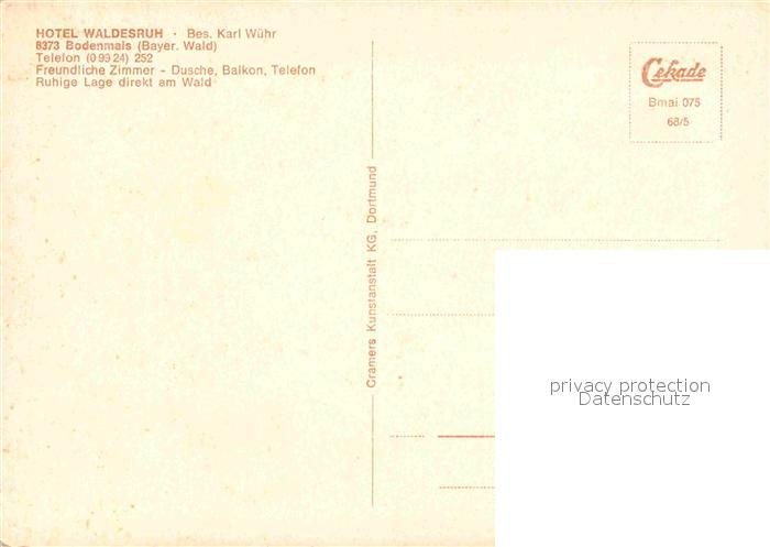 72680000 Bodenmais Hotel Waldesruh postalisch nicht gelaufen Erhaltung siehe scans [LiesaD40] KatCode: 11110009276117