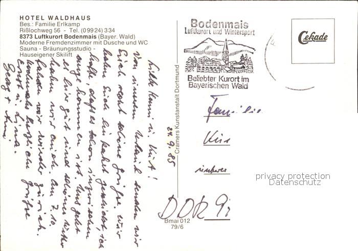 72455286 alte Postkarte Bodenmais Hotel Waldhaus postalisch gelaufen Erhaltung siehe scans KatCode: 11110009276117