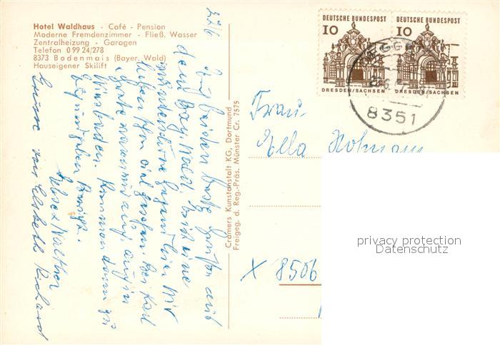 73724803 alte Postkarte Bodenmais Hotel Waldhaus Cafe Pension Fliegeraufnahme postalisch gelaufen Erhaltung siehe scans [WerneD78] KatCode: 11110009276117