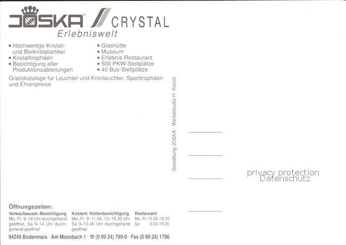 72062709 Bodenmais Joska Crystal Erlebniswelt Glasblaeser Kohl postalisch nicht gelaufen Erhaltung siehe scans KatCode: 11110009276117