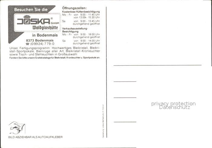 71982812 Bodenmais Joska Crystaltrophaeen postalisch nicht gelaufen Erhaltung siehe scans KatCode: 11110009276117