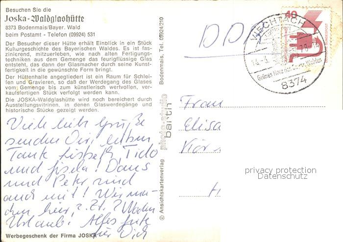72309326 alte Postkarte Bodenmais Joska- Waldglashuette postalisch gelaufen Erhaltung siehe scans KatCode: 11110009276117