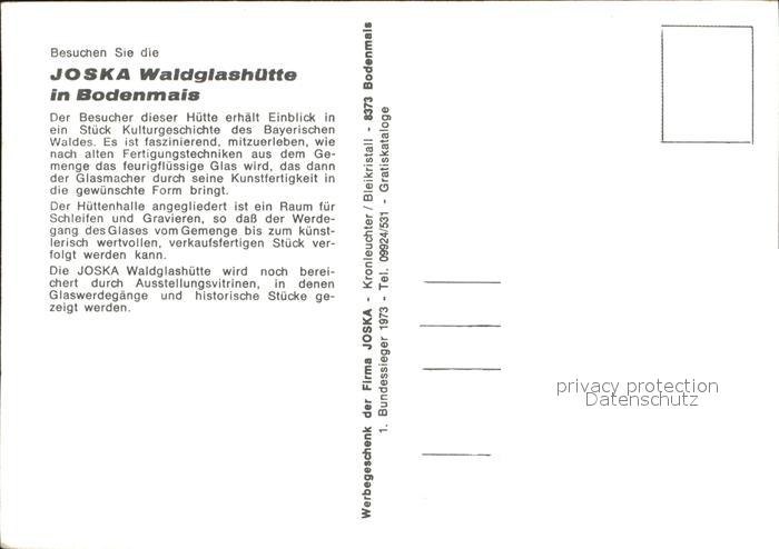72176710 Bodenmais Joska Waldglashuette postalisch nicht gelaufen Erhaltung siehe scans KatCode: 11110009276117