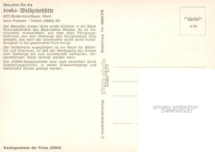 73133071 Bodenmais Joska Waldglashuette postalisch nicht gelaufen Erhaltung siehe scans [FriedD77] KatCode: 11110009276117