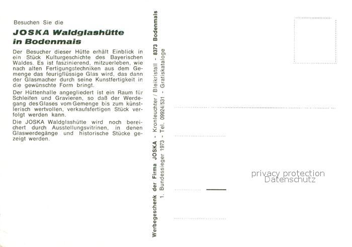 72999489 Bodenmais Joska Waldglashuette postalisch nicht gelaufen Erhaltung siehe scans [WerneD78] KatCode: 11110009276117