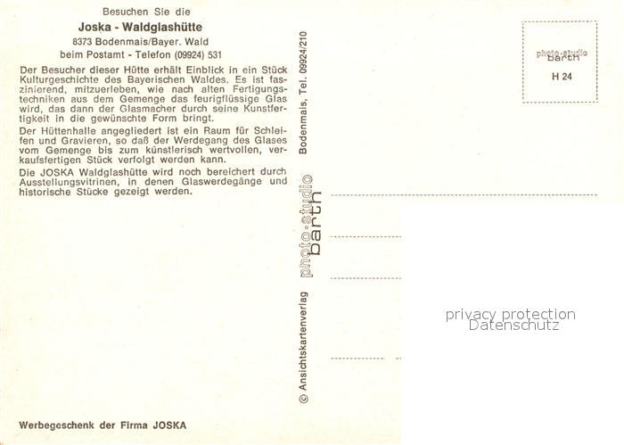 72993734 Bodenmais Joska Waldglashuette postalisch nicht gelaufen Erhaltung siehe scans [AndreD76] KatCode: 11110009276117