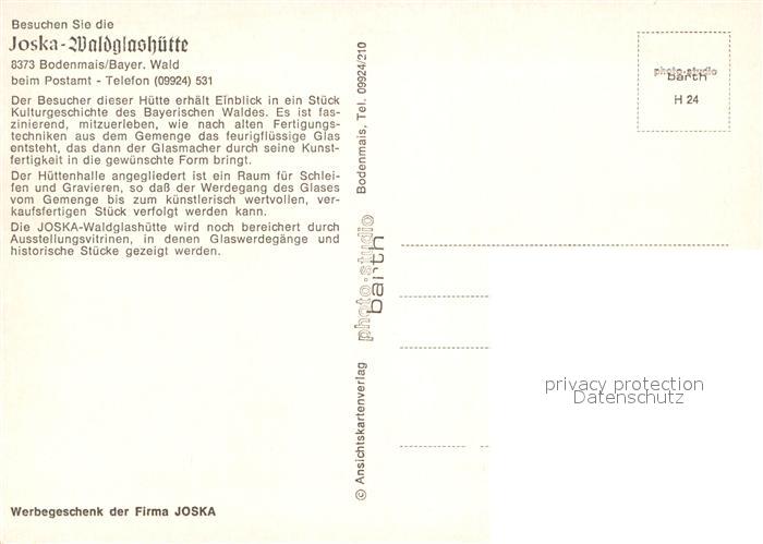 72959771 Bodenmais Joska-Waldglashuette postalisch nicht gelaufen Erhaltung siehe scans [NatalD47] KatCode: 11110009276117