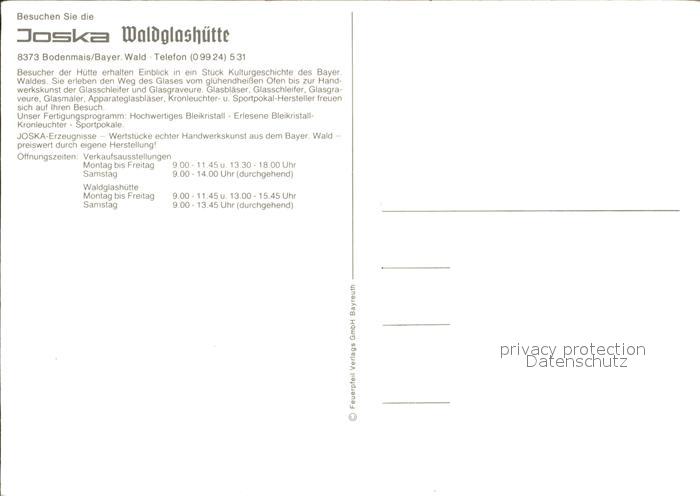 72103504 Bodenmais Joska Waldglashuette Glaskunst postalisch nicht gelaufen Erhaltung siehe scans KatCode: 11110009276117