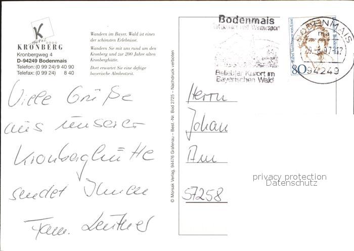72517472 alte Postkarte Bodenmais Kronberg Bayer. Wald postalisch gelaufen Erhaltung siehe scans KatCode: 11110009276117