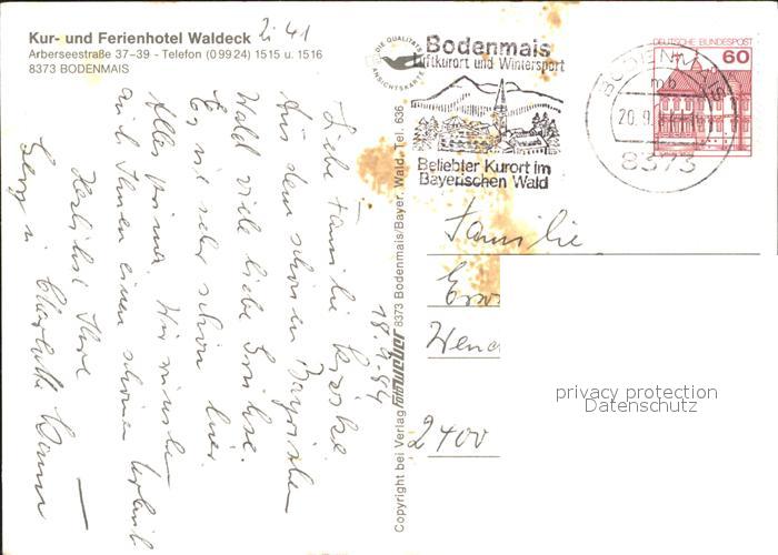 71847500 alte Postkarte Bodenmais Kurhhotel Waldeck postalisch gelaufen Erhaltung siehe scans KatCode: 11110009276117