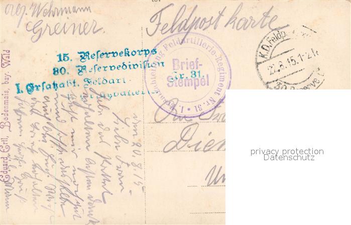 33677185 alte Postkarte Bodenmais Militaria 15. Reservekorps postalisch gelaufen Feldpost – Stempel Erhaltung siehe scans [Chrisger] KatCode: 11110009276117