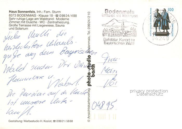 73859202 alte Postkarte Bodenmais Panorama Haus Sonnenfels Gaststube Park postalisch gelaufen Erhaltung siehe scans [WerneD78] KatCode: 11110009276117
