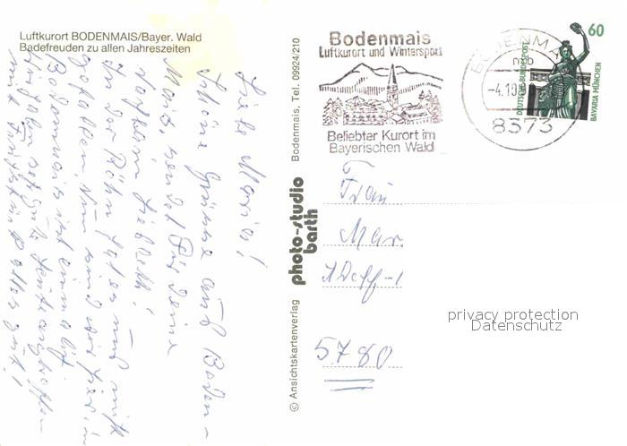 72825224 alte Postkarte Bodenmais Panorama Luftkurort Bayerischer Wald Freibad Hallenbad postalisch gelaufen Erhaltung siehe scans [FriedD77] KatCode: 11110009276117