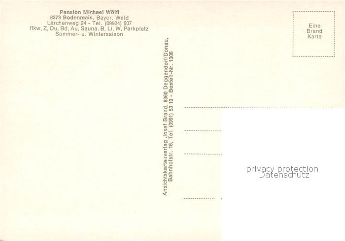 73759360 Bodenmais Pension Michael Woelfi postalisch nicht gelaufen Erhaltung siehe scans [FriedD77] KatCode: 11110009276117