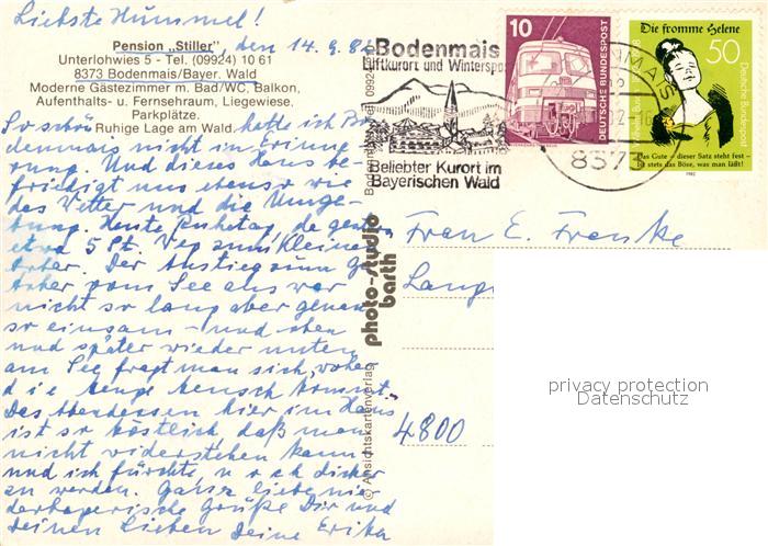 73091779 alte Postkarte Bodenmais Pension Stiller postalisch gelaufen Erhaltung siehe scans [KathaD81] KatCode: 11110009276117