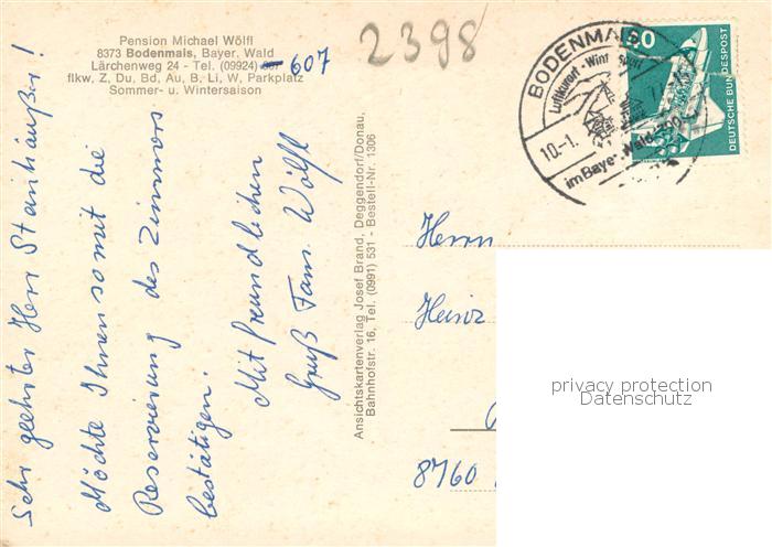73759358 alte Postkarte Bodenmais Pension Woelfi postalisch gelaufen Erhaltung siehe scans [FriedD77] KatCode: 11110009276117