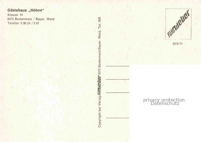 74038898 Bodenmais Regen Bayern Gaestehaus Hoehne Gastraum Fremdenzimmer Panorama postalisch nicht gelaufen Erhaltung siehe scans [FriedD77] Frie Katcode 11110009276117