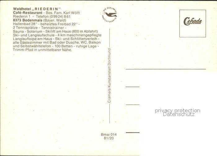 72478718 Bodenmais Wald Hotel Riederin postalisch nicht gelaufen Erhaltung siehe scans KatCode: 11110009276117