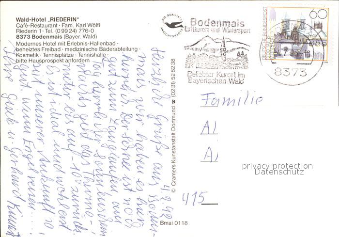 72221737 alte Postkarte Bodenmais Wald-Hotel Riederin postalisch gelaufen Erhaltung siehe scans KatCode: 11110009276117