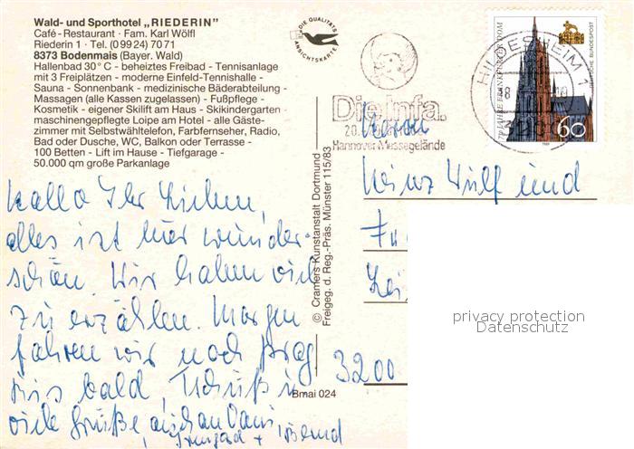 72620764 alte Postkarte Bodenmais Wald- und Sporthotel Riederin Fliegeraufnahme postalisch gelaufen Erhaltung siehe scans [LiesaD40] KatCode: 11110009276117