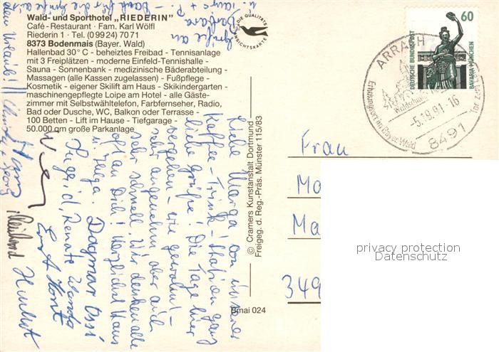 73540287 alte Postkarte Bodenmais Wald und Sporthotel Riederin Fliegeraufnahme postalisch gelaufen Erhaltung siehe scans [WerneD78] KatCode: 11110009276117
