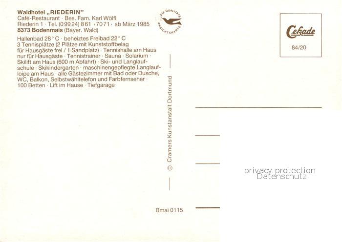 73165569 Bodenmais Waldhotel Riederin Fliegeraufnahme postalisch nicht gelaufen Erhaltung siehe scans [WerneD78] KatCode: 11110009276117