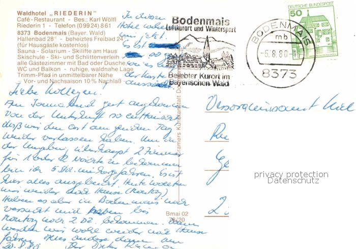 72765581 alte Postkarte Bodenmais Waldhotel Riederin postalisch gelaufen Erhaltung siehe scans [LiesaD40] KatCode: 11110009276117
