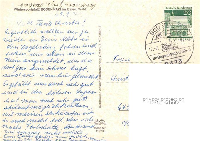 72752895 alte Postkarte Bodenmais Wintersportplatz postalisch gelaufen Erhaltung siehe scans [KathaD81] KatCode: 11110009276117