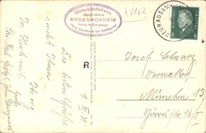 41374689 alte Postkarte Bodenschneid Bodenschneidhaus mit Gipfel im Winter postalisch gelaufen gute Erhaltung KatCode: 11110009182131