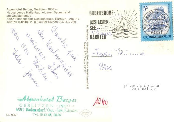 73264818 alte Postkarte Bodensdorf Ossiacher See Alpenhotel Berger postalisch gelaufen Erhaltung siehe scans [KathaD81] KatCode: 11390