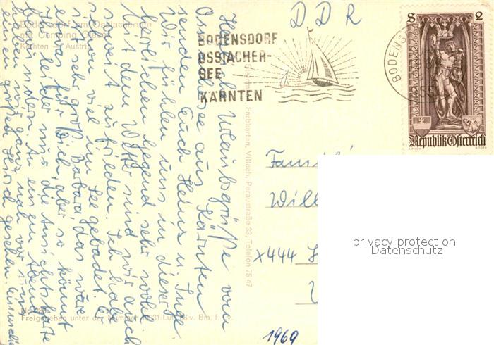 73526131 alte Postkarte Bodensdorf Ossiacher See Fliegeraufnahme postalisch gelaufen Erhaltung siehe scans [FriedD77] KatCode: 11390